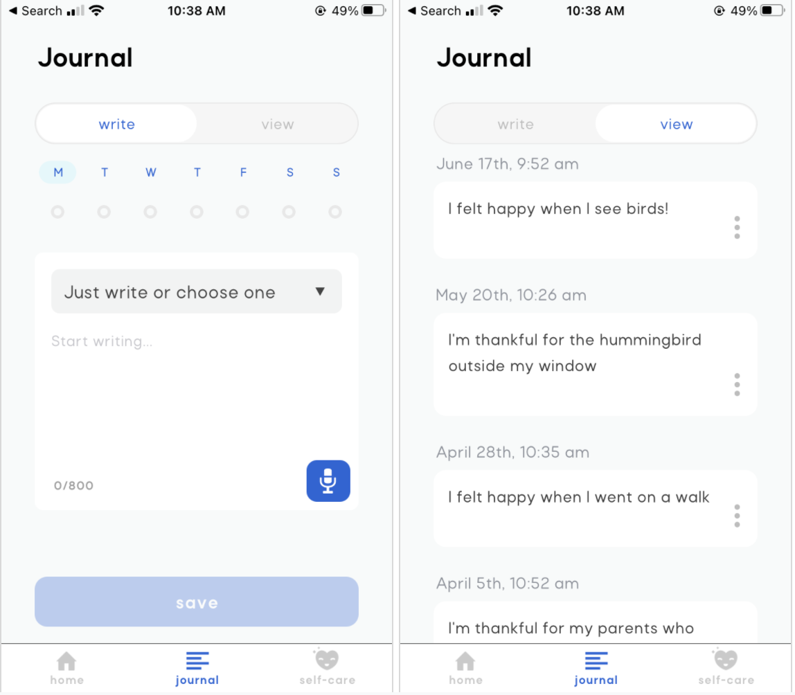 So, at Manatee we started thinking, what can be done to help our kids before things escalate? What about those times when kids need something, but a crisis hotline feels too drastic? How can we help them snap out of a funk and into a healthy coping tool? Like calling a friend or writing down their thoughts. That’s when we decided to develop our ‘self-care feature’.